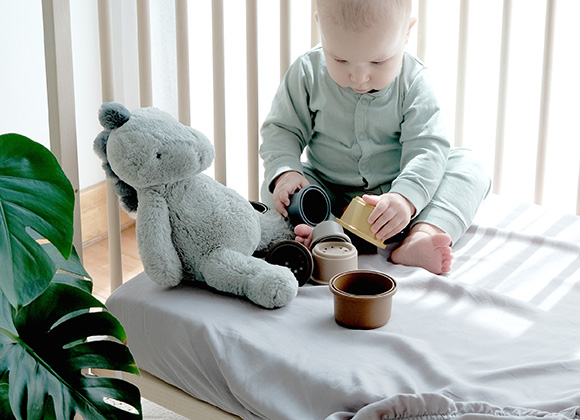 我們的Heveya®竹板僅由100%竹萊賽爾製成,這是一個很好的環保選擇。竹樹是一種可持續的資源,幾乎不需要水就能茁壯成長。竹纖維是可生物降解的,在不損害環境的情況下回歸自然。我們使用閉環製造工藝,這意味著用於從竹漿中製造竹纖維的解決方案 99% 被回收和再利用。它自然是安全的,即使是你的寶寶吸吮!