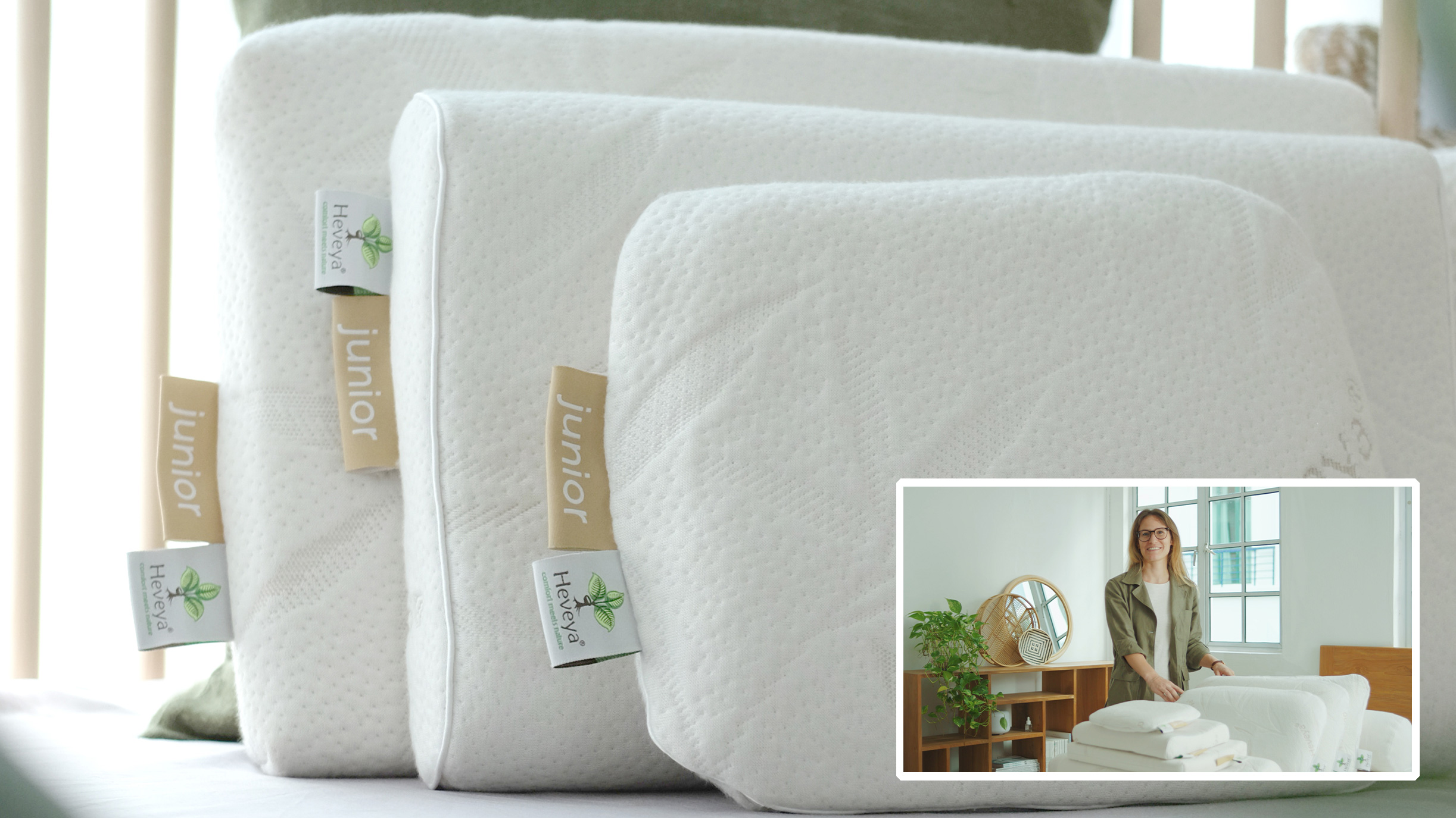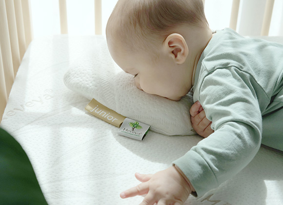 這款Heveya® Junior的核心由100%天然乳膠製成,這些乳膠是從經過認證的有機乳膠種植園收穫的。枕套由環保竹纖維紡織品製成,柔軟奢華。