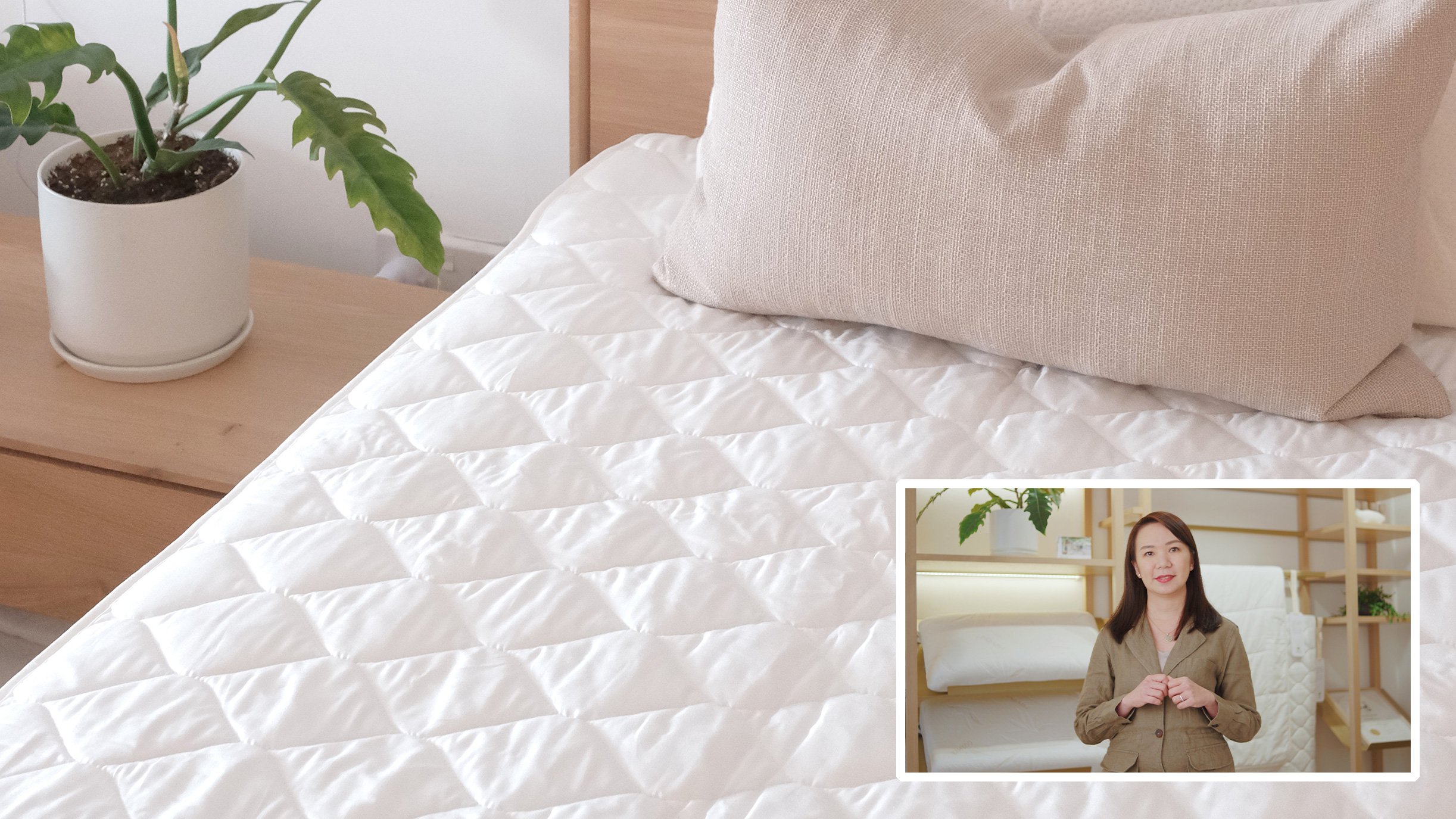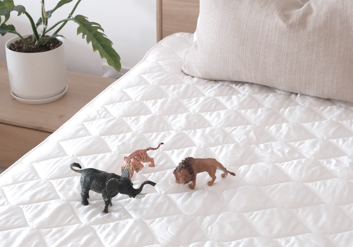 每個角落都配有鬆緊帶,可將其固定到位,不會在您睡覺時滑動。與我們的 Heveya® 可拆卸床褥套比較,床褥保護墊須較頻密地清洗。只需將其放進洗衣機並以最高攝氏 60 度的溫度清洗!